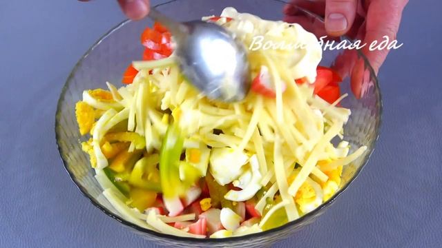 Кто бы и что ни говорил, но я как ел, так и буду есть крабовые палочки. Привет друзья! Сегодня предлагаю вам испробовать вкуснейшие два салата с крабовыми палочками. Знаю, что найдутся те, которые начнут писать о несовместимости ингредиентов. Но вы сначала все же попробуйте. Вкус получается сбалансированным и очень ярким. Ингредиенты: 1 салат: • Крабовые палочки – 250 г • Перец болгарский – 1-1,5 шт. • Сыр – 150 г • Яйца вареные – 3 шт. • Помидор – 2 шт. • Чеснок – 1-2 зуб. • Майонез – 2-3 ст.л. 2 салат: • Крабовые палочки – 250 г • Мандарины – 3 шт. • Сыр – 250 г • Яйца вареные – 4 шт. • Кукуруза консерв. – 250 г • Майонез – 3 ст. л. Ну и конечно не забудьте поставить лайк и подписаться на канал @volshebnaiaeda Всем огромное спасибо и приятного аппетита!