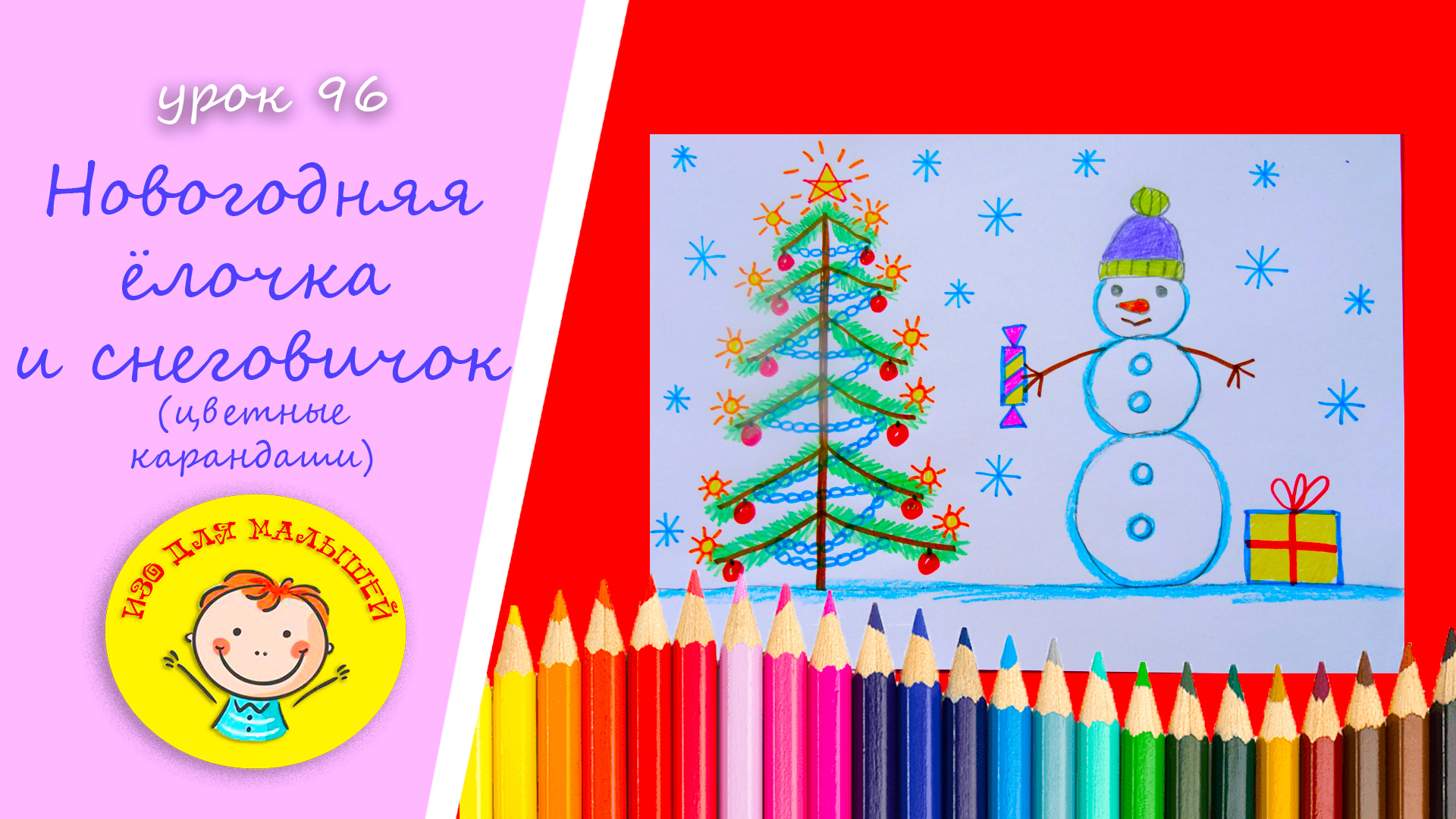 Рисуем СНЕГОВИКА И НОВОГОДНЮЮ ЁЛОЧКУ.УРОК 96 Тема: " новогодняя ёлочка и снеговичок"- карандаши