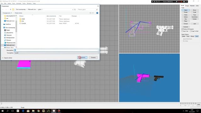 Перенос оружия из CSGO или любой другой игры, на скелет CSS. 1 декомпеляция моделей CSS и CSGO 2 разбиение модели на части, для удобства работы 3 удаление старого скелета и подгрузка нового 4 выравнивание модели и привязка к костям. 5 компеляция модели 6 пережал тектуры в более старом формате (CSS не поддерживает компрессор выше версии 7.2) 7 финал