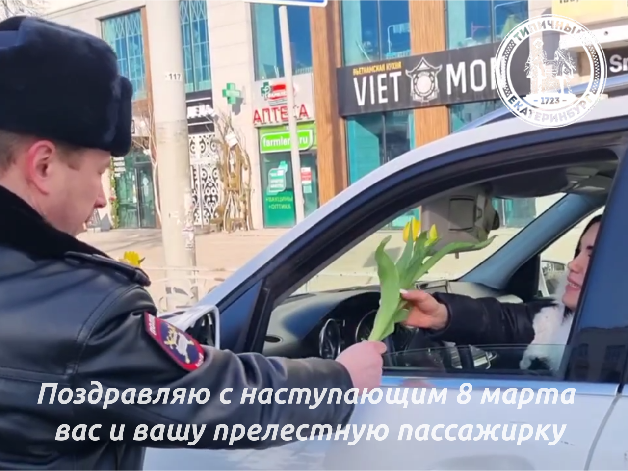 Праздничные экипажи ДПС поздравляют милых дам с 8 марта