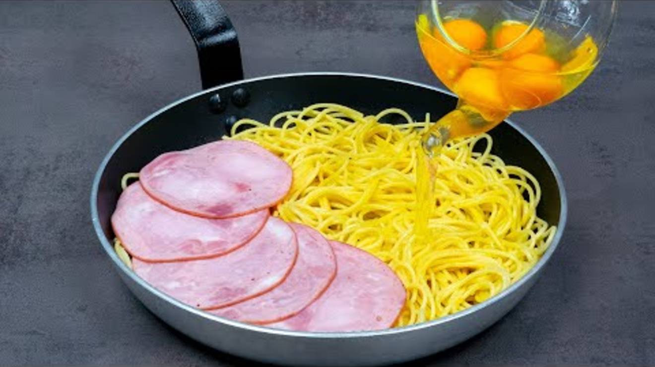 Царский ужин из спагетти на сковороде. Всего 5 ингредиентов