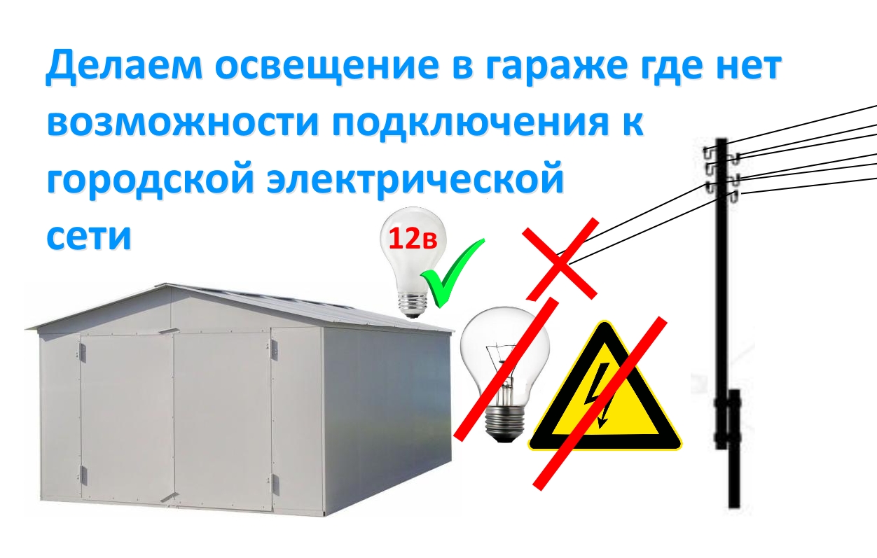 Делаем освещение в гараже где нет возможности подключения к городской электрической сети.