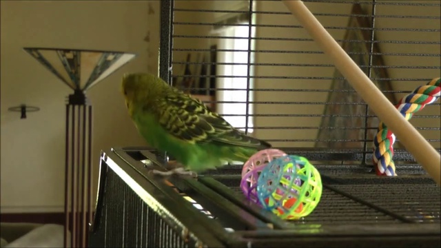 Волнистый попугайчик развлекает публику.