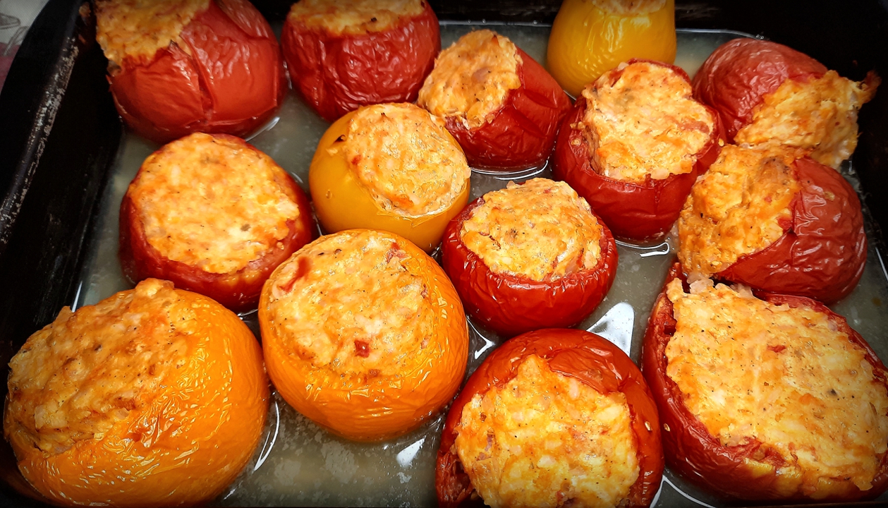 Запечённые помидоры с куриным фаршем и рисом / Яркое и вкусное блюдо!