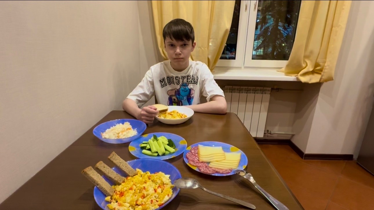 Мукбанг: Скрэмбл со сладкой молодой кукурузой, луком, перцем и моцареллой копчёной😋