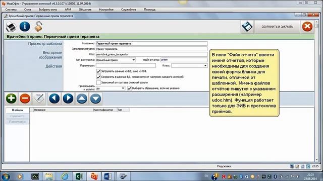 Заполнение заголовочной части шапки шаблона медицинского документа