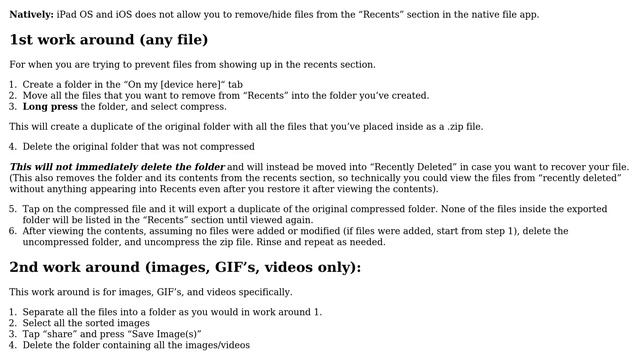 Apple: How to hide recent files in iPad OS and iOS?