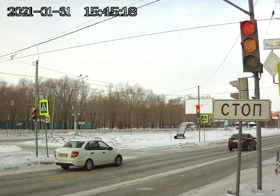 Пересечение стоп-линии и выезд на перекрёсток на запрещающий движение сигнал светофора. Госномера нарушителей: Х382УМ 174 LADA (ВАЗ) , Vesta 2019 г.в., белый и Е800УВ 74 Kia Rio, 2015 г.в., чёрный. Перекрёсток ул. Советской и пер. Советского 30-01-2022 (Внимание! Эпизод записан 30.01.2022! Регистратор показывает ошибочную дату. Приношу извинения за невнимательность.) п. 6.16 ПДД Дорожный знак "Стоп-линия". Место остановки транспортных средств при запрещающем сигнале светофора. п. 6.2. ПДД - жёлтый сигнал запрещает движение, красный сигнал запрещает движение, зелёный сигнал разрешает движение. п. 6.13 ПДД - при запрещающем сигнале светофора... водители должны остановиться перед стоп-линией (знаком 6.16).