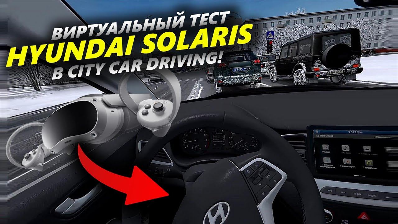 Виртуальный тест Hyundai Solaris в симуляторе City Car Driving c VR-шлемом PICO 4 и рулем G923