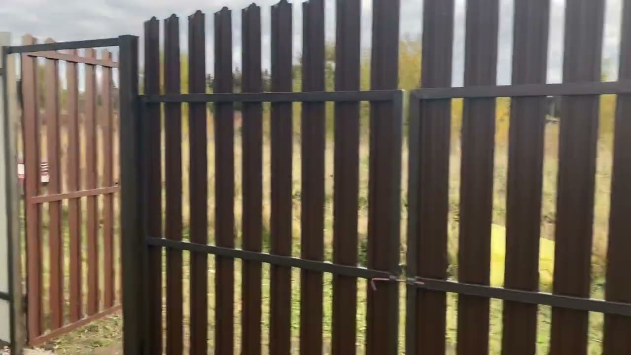 Забор из профнастила, распашные ворота и Калитка с зашивкой евроштакетником