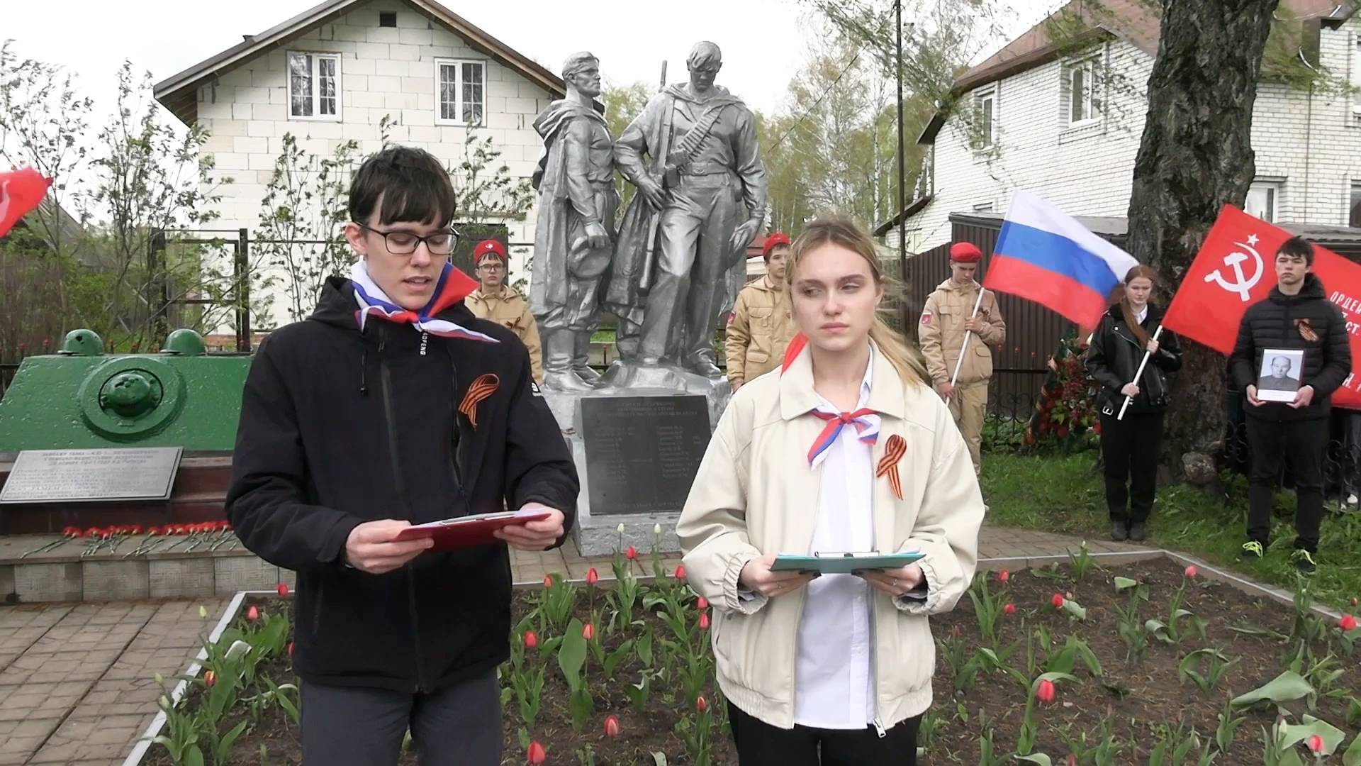 Митинг, у Братской могилы советских воинов и погибших жителей деревни Рычково.