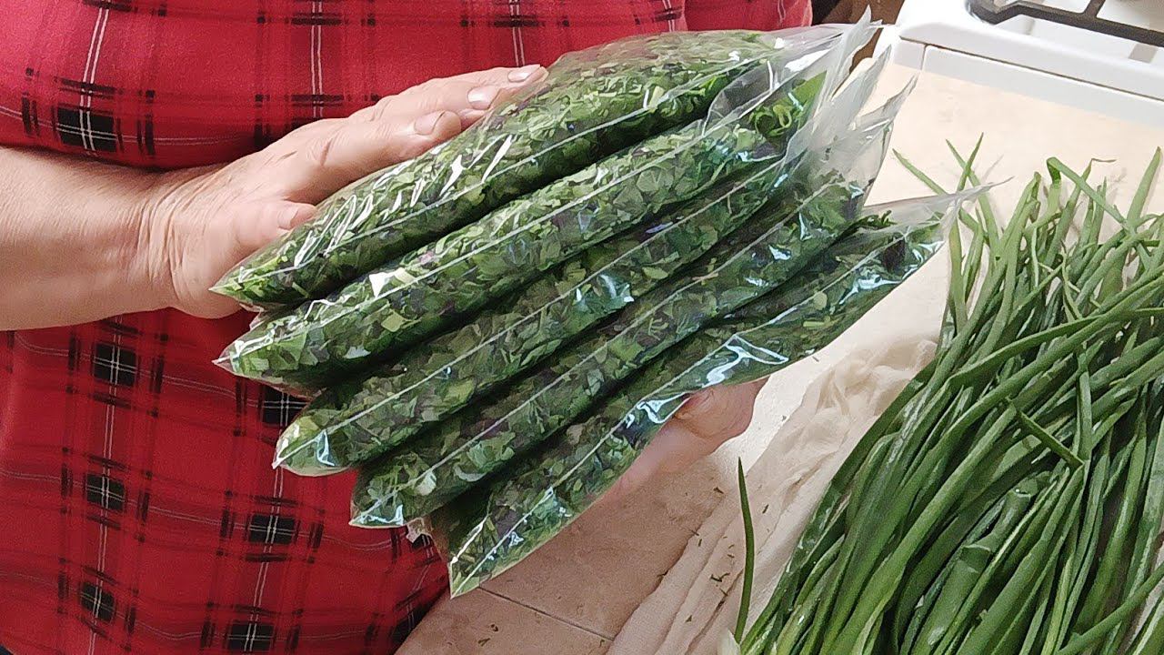 "Жизнь на пенсии"... Шинковала зелень для заморозки.)) Немного прополола огород.