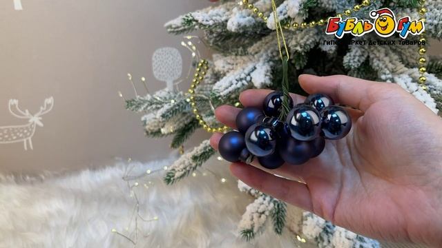 337166 Елочное украшение Гроздь шаров стеклянное синее 10шт 1см