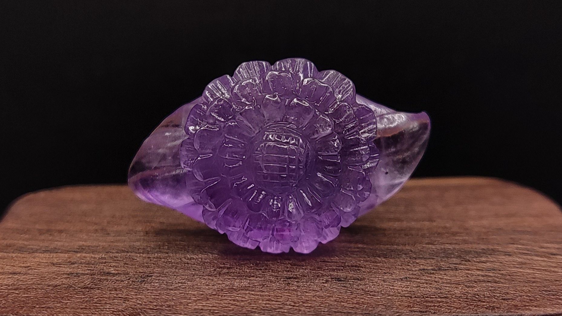 Аметист резной цветок 40.85 ct. Место добычи камня - Уругвай. 100% природный камень, без облагораживания. Чистота: I1(GIA):Г1 (Xtl; Gth). Размер: 30,58 х 18,95 х 15,44 мм. №1491