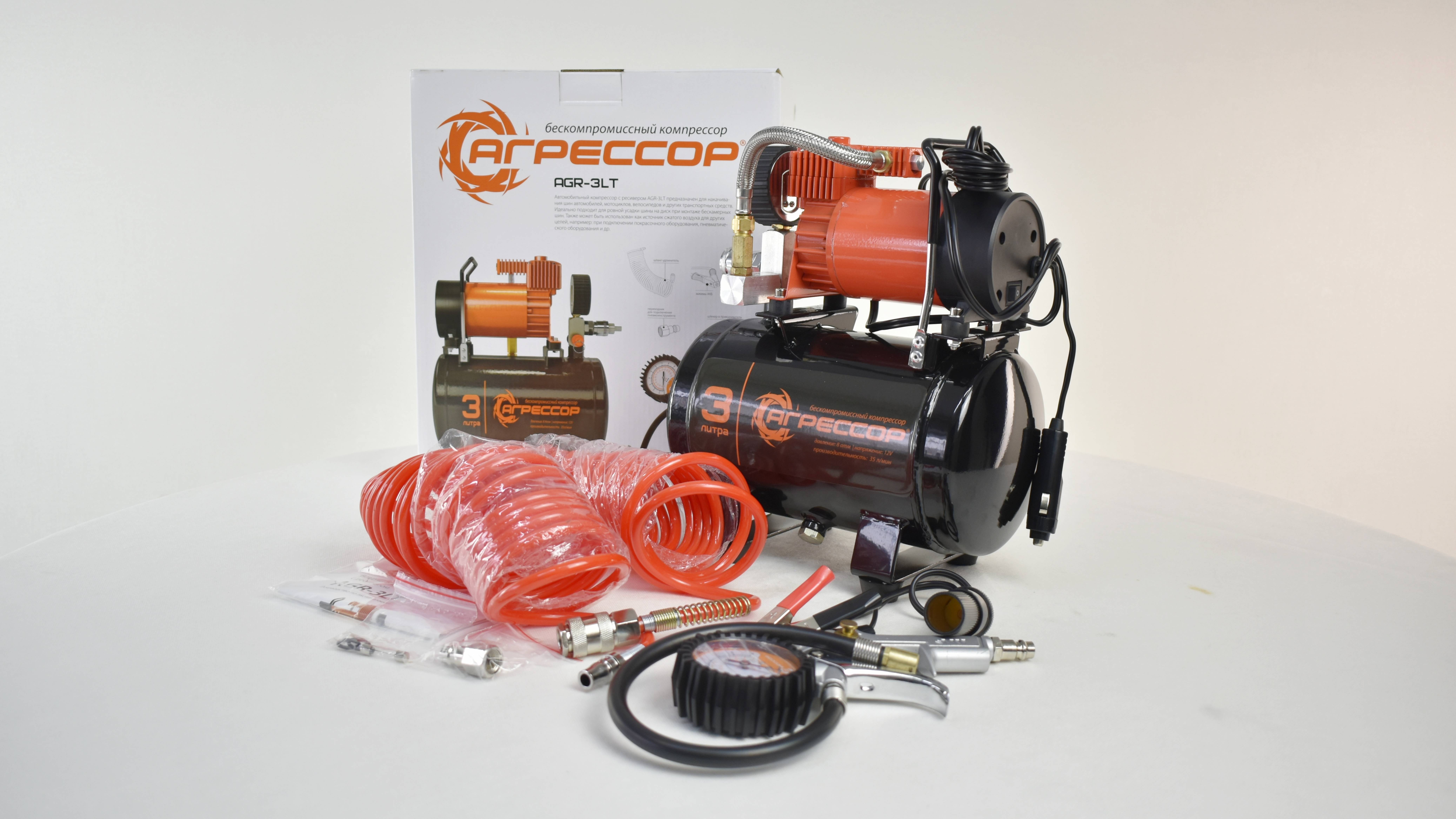 Компрессор Агрессор AGR-3LT автомобильный 35 л/мин. С РЕССИВЕРОМ 3л