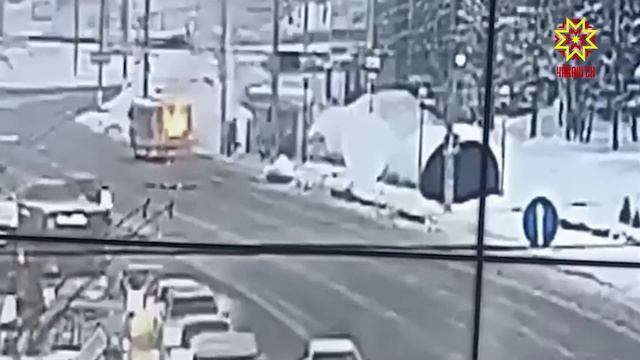 В Чебоксарах возле остановки «Энергозапчасть» загорелся автобус