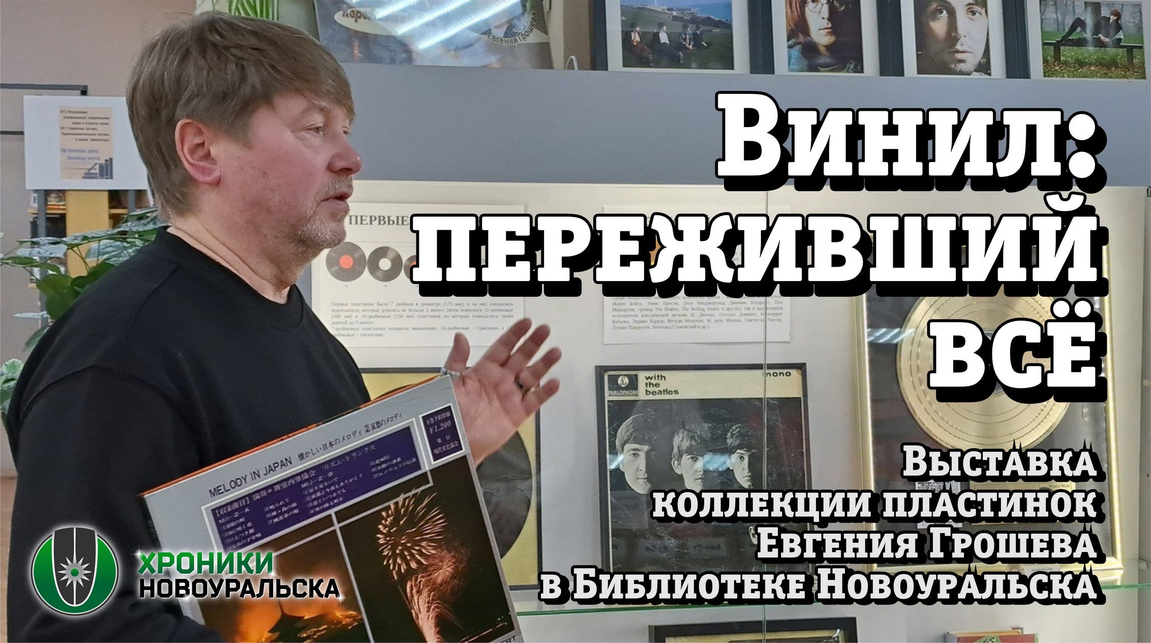 На выставке «Винил: переживший всё», прошедшей в Новоуральске в феврале 2024 года, представлены пластинки известных зарубежных и российских исполнителей и знаменитых групп, аксессуары для винила, сувенирная продукция, проигрыватель. На открытии выставки Евгений Грошев сам представил свою коллекцию и рассказал о своих музыкальных предпочтениях, об истории своего увлечения, поделится советами по созданию собственной коллекции. Получилась полноценная лекция, представленная в нашем фильме. Музыка – большое увлечение Евгения Грошева. Он с удовольствием слушает классику, рок, поп, диско, современный джаз… В общем, почти все музыкальные направления и жанры. Ещё в юности у него появился интерес к винилу, который позже перерос в коллекционирование виниловых пластинок. Тогда, в 70-е годы ХХ века, винил во всем мире был на пике популярности, а сейчас переживает второе рождение. Меломаны вновь обратились к пережившим десятилетия пластинкам. Секрет их притягательности в детских воспоминаниях, ностальгии по ушедшему времени, в желании слушать более теплый и живой звук.В 2014 году Евгений вернулся к своему увлечению. На сегодняшний день в его коллекции более двухсот виниловых пластинок, выпущенных в России и за рубежом. Есть в его коллекции пластинки из Англии, США, Японии, Голландии, Франции, Швеции, Италии, Испании, Чехии, Германии, Болгарии, Ирландии. Снято 4 февраля 2024 года в зале универсальных фондов Библиотеки Новоуральска, специально для портала Хроники Новоуральска. #БиблиотекаНовоуральска #Залуниверсальныхфондов #выставки_Новуральск #хоббибум #коллекцияпластинок #коллекционерыНовоуральска #винил #пластинка #ХроникиНовоуральска