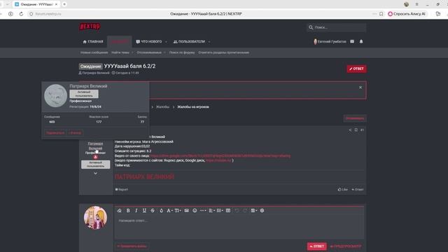 2_ Жалобы на игроков _ NEXTRP — Яндекс Браузер 2026-02-03 14-33-39