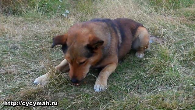 Какой умный пёс - достает орехи из шишки и грызёт их. Колыма