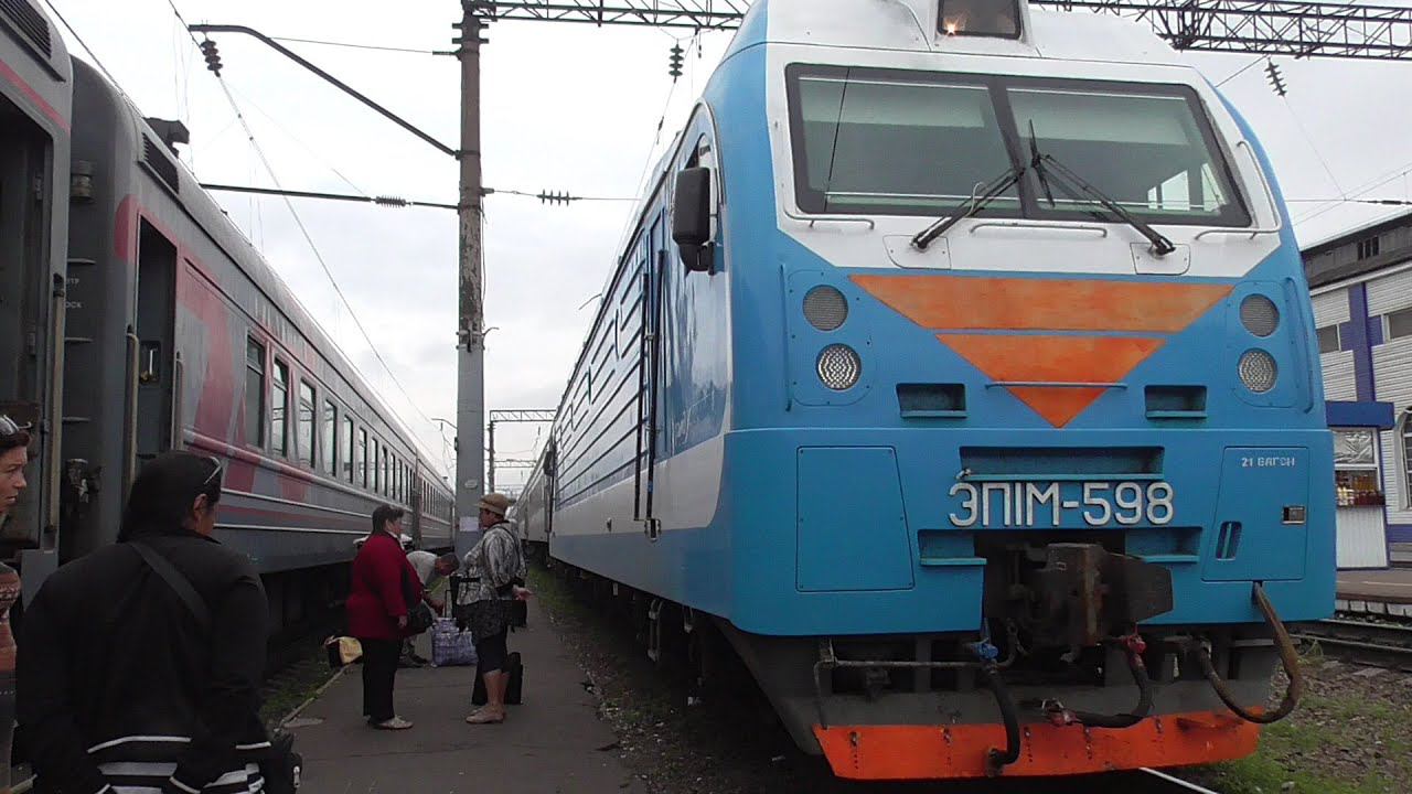 ЭП1М-598 с поездом №468М Смоленск — Адлер прибывает на ст. Россошь. Снято на камеру Panasonic hc-v530