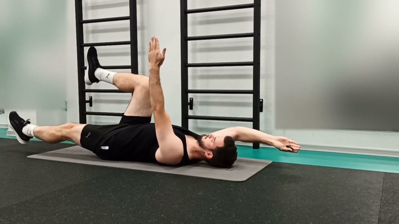 Базовое упражнение в реабилитации. Направленно на укрепление мышц кора.