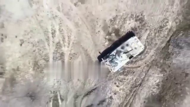 Кадры точечного сброса гранаты с помощью квадракоптера и уничтожения украинского БМП-1.