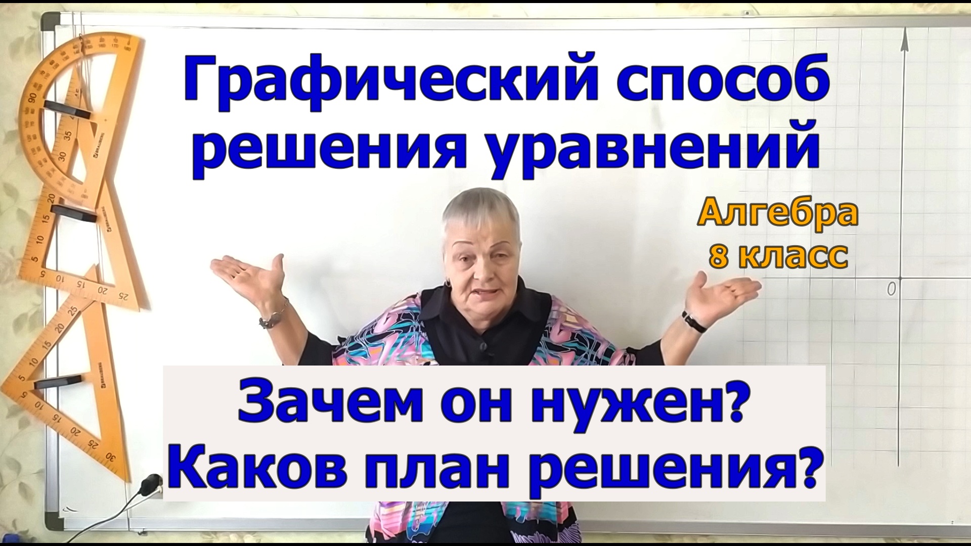 Алгебра 8 класс. Что такое графический способ решения уравнений? Зачем нужен графический способ решения уравнений? Сегодня мы ответим на эти вопросы. Мы дадим Вам план или алгоритм графического способа решения уравнения, и подробно разберём все пункты этого плана. На примере одного уравнения мы покажем Вам два из трёх вариантов решения линейного уравнения графическим способом. Обратим Ваше внимание на то, что графический способ решения уравнений не даёт точного ответа, поэтому ответ нужно записывать как приближенное значение. Но зато графический способ решения уравнений гарантированно показывает Вам точное количество корней уравнения, что помогает Вам избежать серьезной ошибки в решении уравнения. Подробный план урока и ссылки на предыдущие уроки Вы можете найти в описании под видео. 00:00 Начало видео. 00:32 Решим линейное уравнение 2x + 6 = 0. 01:31 План графического способа решения уравнения. 05:50 Второй вариант решения уравнения. 08:49 Подводим итоги. #алгебра8класс #графическийспособрешенияуравнений #решениеуравненийграфическимспособом8 #решениеуравненийграфическимспособом7класс #графическийспособрешенияуравнений8класс #МатематикаОтБаканчиковой алгебра 8 класс, графический способ решения уравнений, решение уравнений графическим способом 8, решение уравнений графическим способом 7 класс, графический способ решения уравнений 8 класс,графический способ решения квадратных уравнений