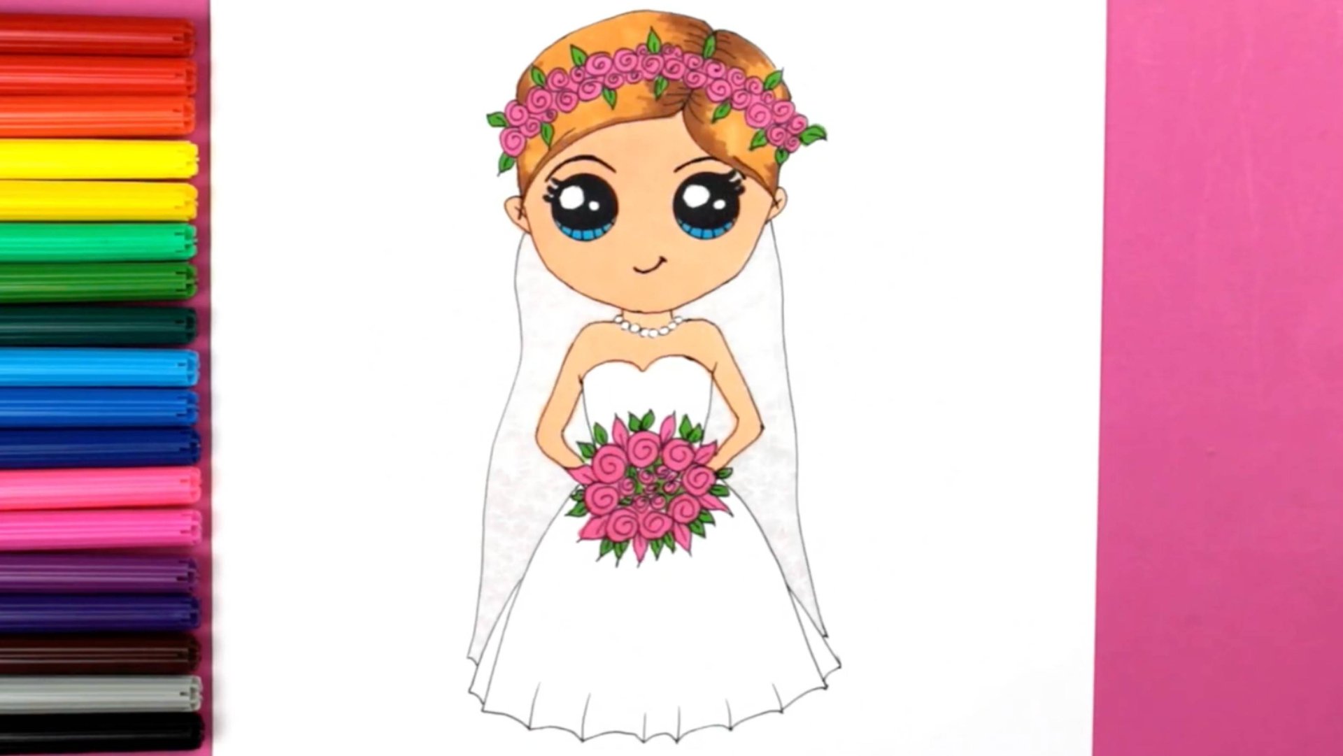 Как нарисовать НЕВЕСТУ шаг за шагом Легкие рисунки для детей Яркие цвета ❤