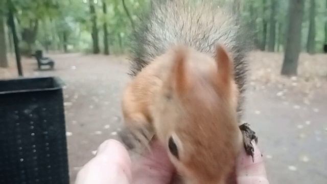 Кормлю белку, которая не моет лапы перед едой