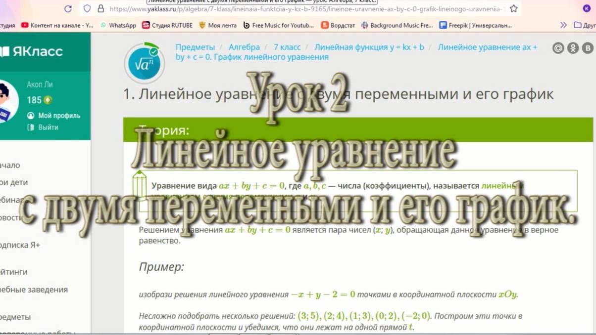 Алгебра 7-ой класс урок 2(Линейная функция)