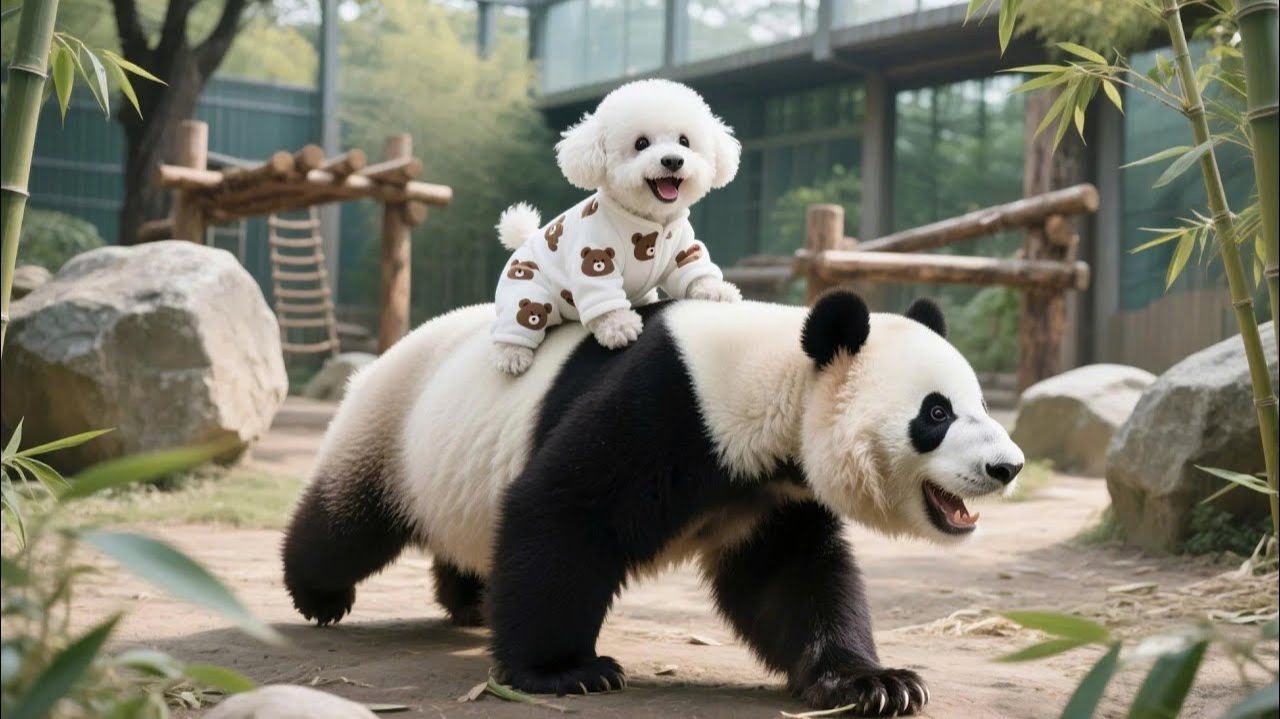 Милый щенок идет с мамой-собакой в зоопарк 🐶�