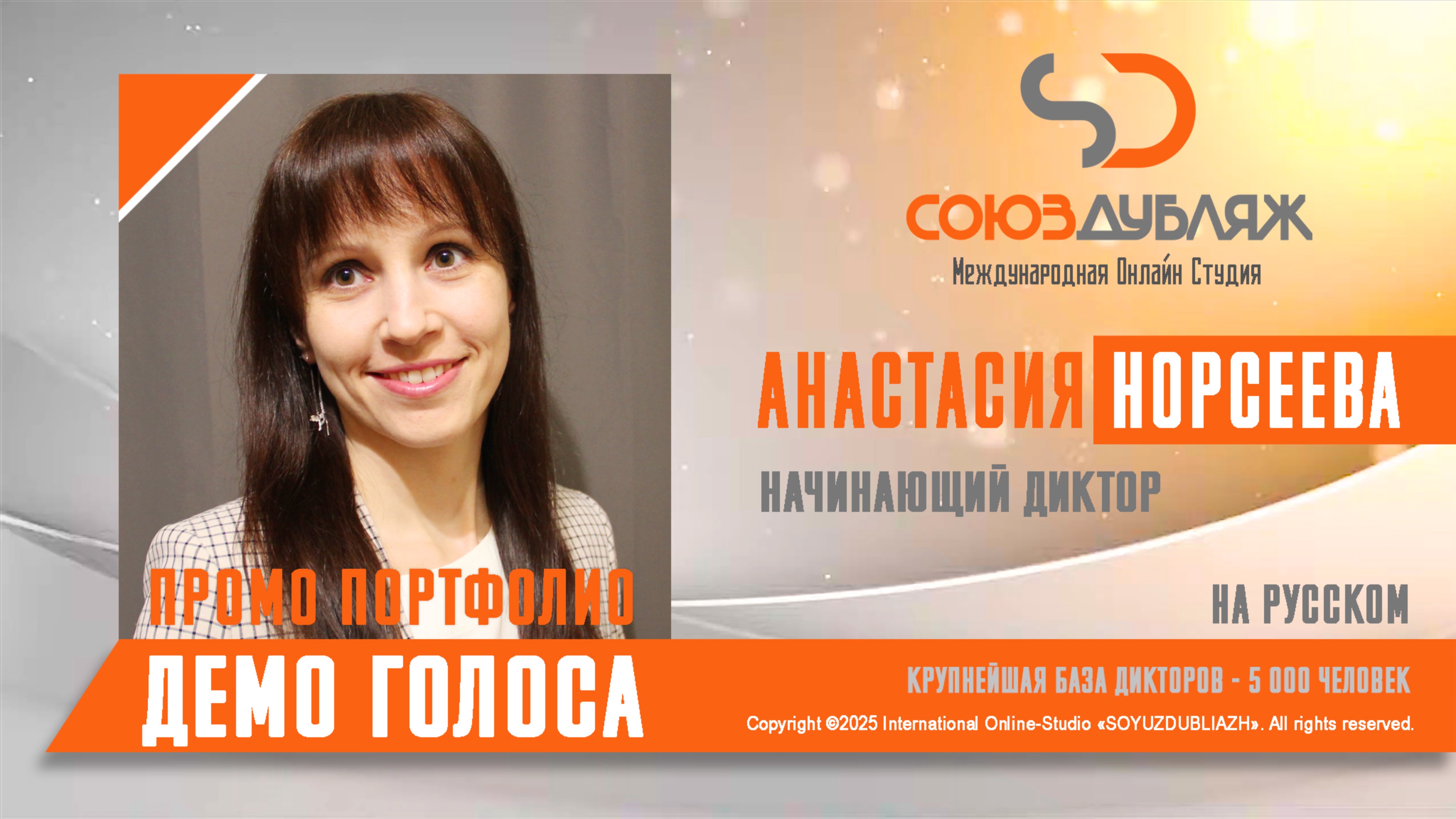 Анастасия Норсеева | Начинающий Диктор | База Дикторов "СОЮЗДУБЛЯЖ"