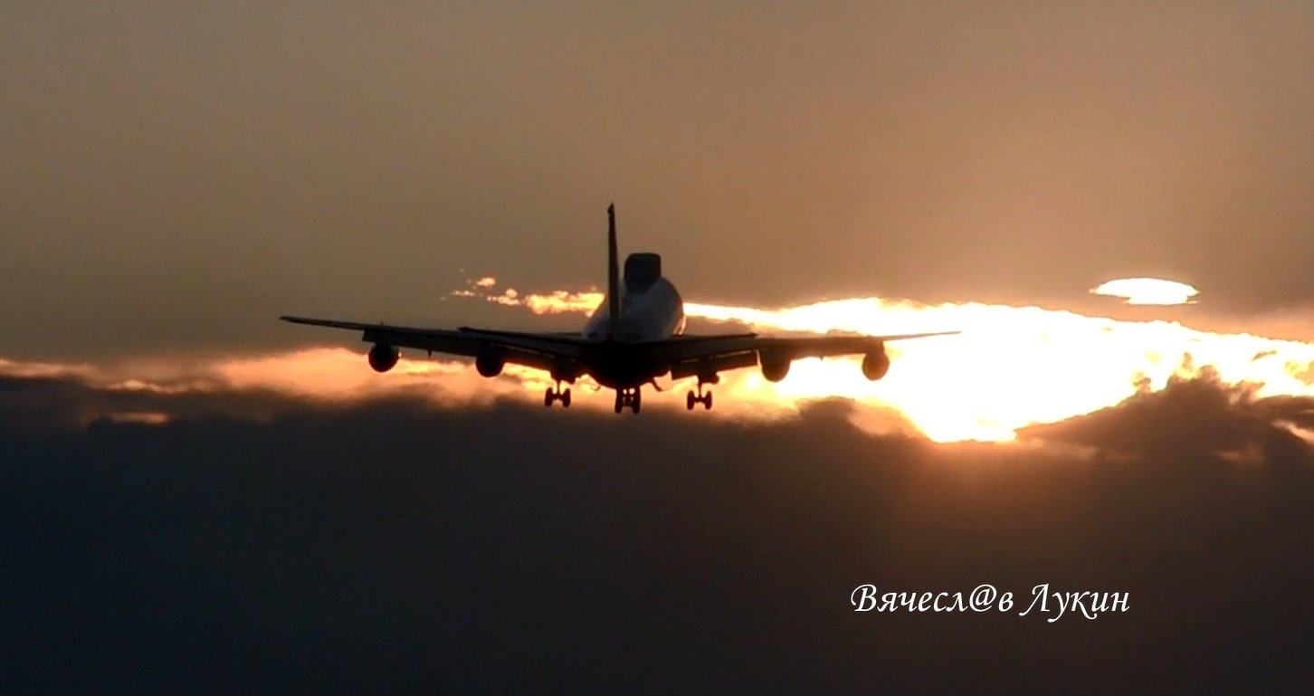 Красивый закат закрывающий грозовым фронтом на фоне большого Ил-80 (Ил-86ВзПУ)