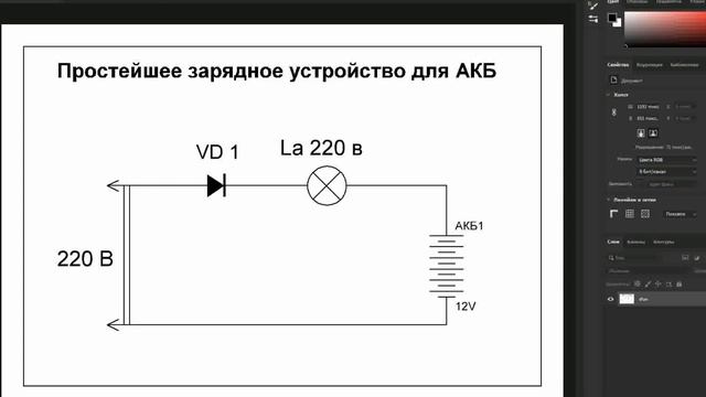 Вашему вниманию предлагается простейшее зарядное устройство. Для экстренной зарядки АКБ. Оно состоит из двух деталей. Это лампа накаливания на 220 вольт и выпрямительный диод. Устройство собираем согласно приведенной схеме. Подключаем аккумуляторную батарею и включаем в 220 вольт. Зарядка идет. Лампа накаливания горит. Яркость свечения больше когда аккумуляторная батарея сильно разряжена. Когда аккумулятор набрал заряд, лампа светиться намного тусклее. ВАЖНО: Соблюдайте меры безопасности! Не касайтесь руками ни к каким деталям и аккумулятору при подключении к 220 вольт. ОПАСНО ДЛЯ ЖИЗНИ! Не заряжайте аккумулятор с подключенными клеймами на автомобиле. Можете вывести электронику автомобиля из строя.