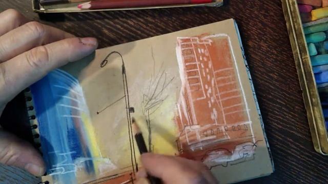 Городские зарисовки Зимний пленэр Уголь Мел Пастель UrbanSketch Charcoal Chalk Pastel Plein air