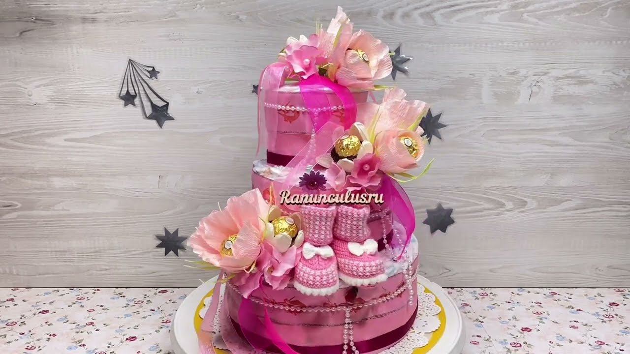 Торт из памперсов для новорожденной девочки с цветами из конфет. Детальнее о товаре https://ranunculus.ru/podarki-na-rozhdenie-rebenka/torty-iz-pampersov/tort-iz-pampersov-s-tsvetami-iz-konfet/ Торты из памперсов https://ranunculus.ru/podarki-na-rozhdenie-rebenka/torty-iz-pampersov/ Сайт https://ranunculus.ru