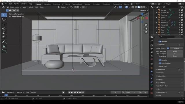 41. Preparing the scene and final rendering. RENDERING MODERN LIVING ROOM in Blender видео уроки