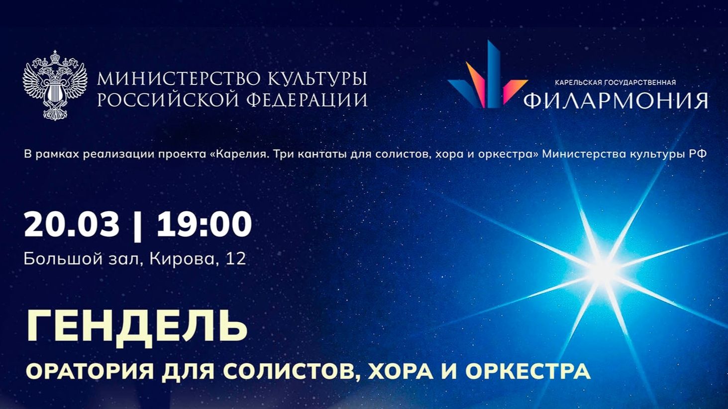 20 марта 2026 года. Петрозаводск, Карельская филармония. 00:00:18 – Лекция Ярослава Тимофеева об истории создания оратории. PART I 00:19:55 – 1. Sinfony SCENE 1 00:23:17 – 2. Comfort ye, comfort ye my people saith your god (Acc. T) 3. Ev’ry valley shall be exalted (Air T) 4. And the glory, the glory of the Lord shall be revealed (Chorus) SCENE 2 5. Thus saith the Lord, the Lord of Hosts The Lord whom ye seek shall suddenly come to His temple (Acc. B) 6. But who may abide the day of His coming for he is like a refiner's fire (Air A) 7. And He shall purify the sons of Levi (chorus) SCENE 3 8. Behold, a virgin shall conceive (Rec. A) 9. / 8. O thou that tellest good tidings to Zion Arise, shine Air (A Chorus) 10. / 9. For behold, darkness shall cover the earth (Acc. B) 11. / 10. The people that walked in darkness (Air B) 12. / 11. For unto us a Child is born (Chorus) SCENE 4 13. / 12. Pifa Pastorale 14. There were shepherds abiding in the field (Rec. S) 15. / 13. And lo, the angel of the Lord came upon them (Acc. S) And the angel said unto them (Rec. S) 16. / 14. And suddenly there was with the angel (Acc. S) 17. / 15. Glory to God in the highest (Chorus) SCENE 5 18. / 16. Rejoice greatly, O daughter of Zion (Air S) 19. Then shall the eyes of the blind be open'd (Rec. A) 20. / 17. He shall feed His flock like a shepherd Come unto Him, all ye that labour (Duet A S) 21. / 18. His yoke is easy, His burthen is light (Chorus) PART II SCENE 1 01:14:55 – 22. / 19. Behold the Lamb of God (Chorus) 23. / 20. He was despised and rejected by men of sorrows He gave his back to his smiters (Air A) 24. / 21. Surely, He hath borne our griefs and carried our sorrows (Chorus) 25. / 22 And with His stripes we are healed (Chorus) 26 / 23. All we like sheep, have gone astray (Chorus) 27. / 24. All they that see Him, laugh Him to scorn (Acc. T) 28. / 25. He trusted in God (Chorus) 29. / 26. Thy rebuke hath broken His heart (Acc. T) 30. / 27. Behold, and see if there be any sorrow (Arioso T) SCENE 2 31. / 28. He was cut off out of the land of the living (Acc. T) 32. / 29. But Thou didst not leave his soul in hell (Air T) SCENE 3 33. / 30. Lift up your heads O ye gates (Chorus) SCENE 4 34. Unto which of the angels said he at any time (Rec. T) 35. / 31. Let all the angels of God worship Him (Chorus) SCENE 5 36. / 32. Thou art gone up on high (Air B (or A)) 37. / 33. The Lord gave the word (Chorus) 38. / 34. How beautiful are the feet of them (Duet AI AII Chorus) 39. / 35. Their sound is gone out into all lands (Arioso T) SCENE 6 40. / 36. Why do the nations so furiously rage together (Air B) 41. / 37. Let us break their bonds asunder (Chorus) 42. He that dwelleth in heaven (Rec. T) SCENE 7 43. / 38. Thou shalt break them with a rod of iron (Air T) 02:04:03 – 44. / 39. Hallelujah (Chorus) PART III SCENE 1 02:07:58 – 45. / 40. I know that my Redeemer liveth (Air S) 46. / 41. Since by man came death (Chorus) SCENE 2 47. / 42. Behold, I tell you a mystery (Acc. B) 48. / 43. The trumpet shall sound and the dead shall be rais'd (Air B) SCENE 3 49. Then shall be brought to pass (Rec. A) 50. / 44. O death, where is thy sting? (Duet A T) 51. / 45. But thanks be to God (Chorus) 52. / 46. If God be for us, who can be against us (Air S) SCENE 4 53. / 47. Worthy is the Lamb that was slain (Chorus) Amen (Chorus) 02:40:49 – АПЛОДИСМЕНТЫ https://en.wikipedia.org/wiki/Structure_of_Handel%27s_Messiah