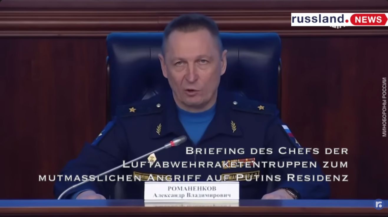 Briefing des Chefs der Luftabwehrraketentruppen zum NATO-Angriff auf die Residenz von Wladimir Putin