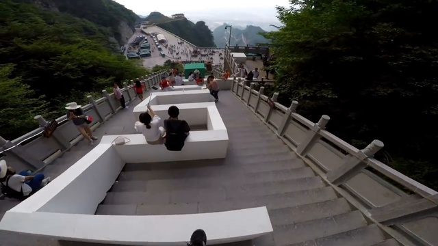 В Китае на горе Тяньмэнь установили очень длинную трассу для паркура. Ее протяженность — 300 метров (или 999 ступенек). Австралийский фрираннер Алекс Шауэр назвал свой спуск по ней «самым крутым и безумным».