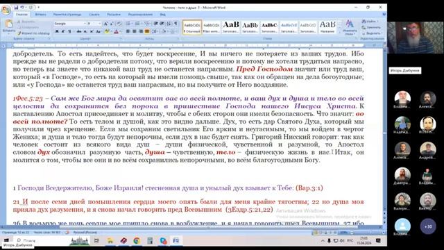 15.04.2024. Книга Бытия. Душа и тело во свете Библии. Игорь Дыбунов.