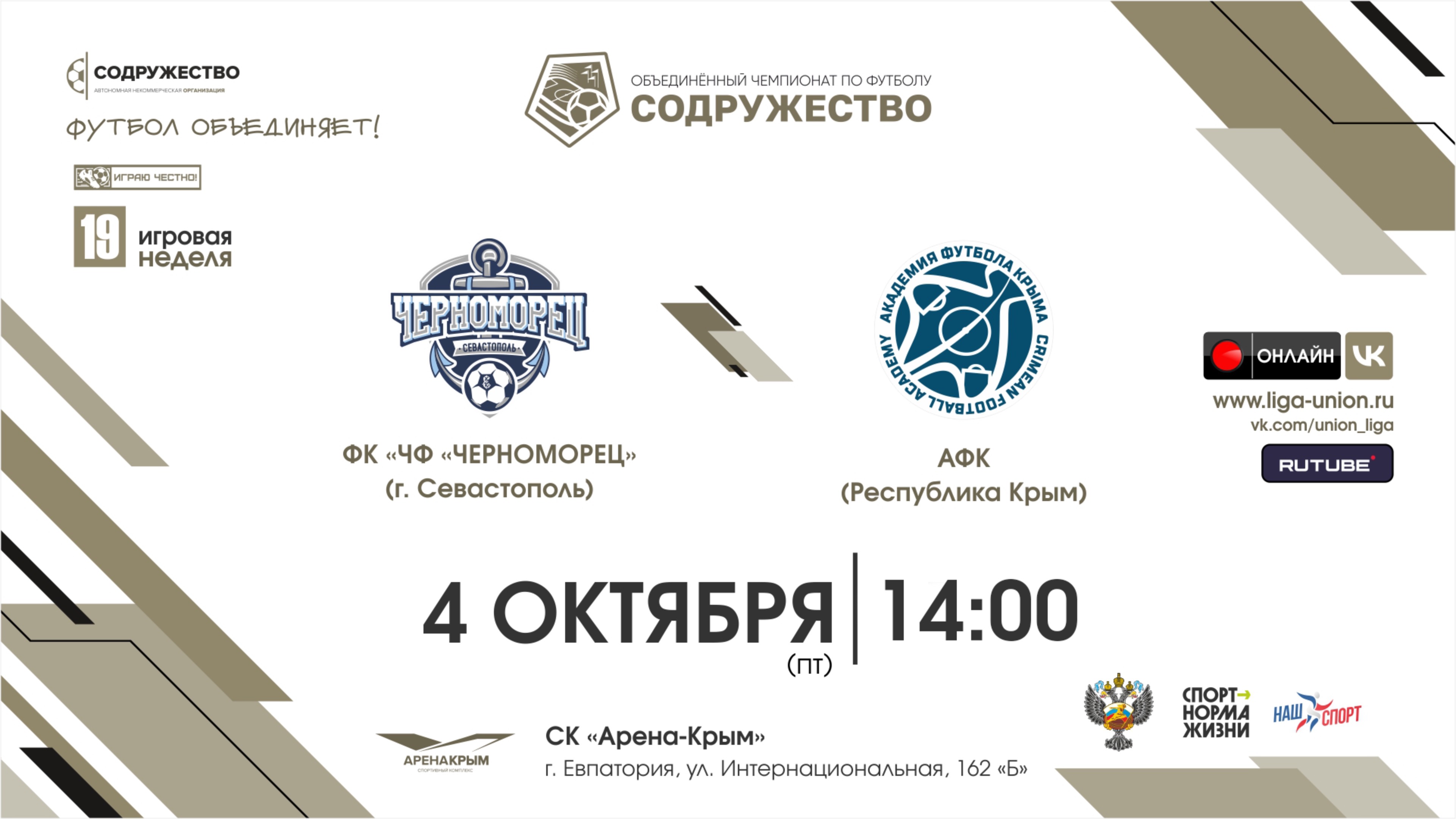 19 игровая неделя | ФК "ЧФ "Черноморец" (г. Севастополь) vs Академия футбола Крыма (Республика Крым)