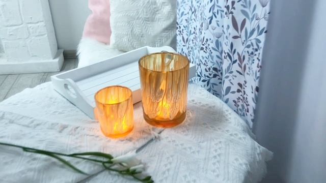 Набор стеклянных подсвечников ЦВЕТНЫЕ РАЗВОДЫ, оранжевый, 8-12 см, 2 шт., 2035117-1