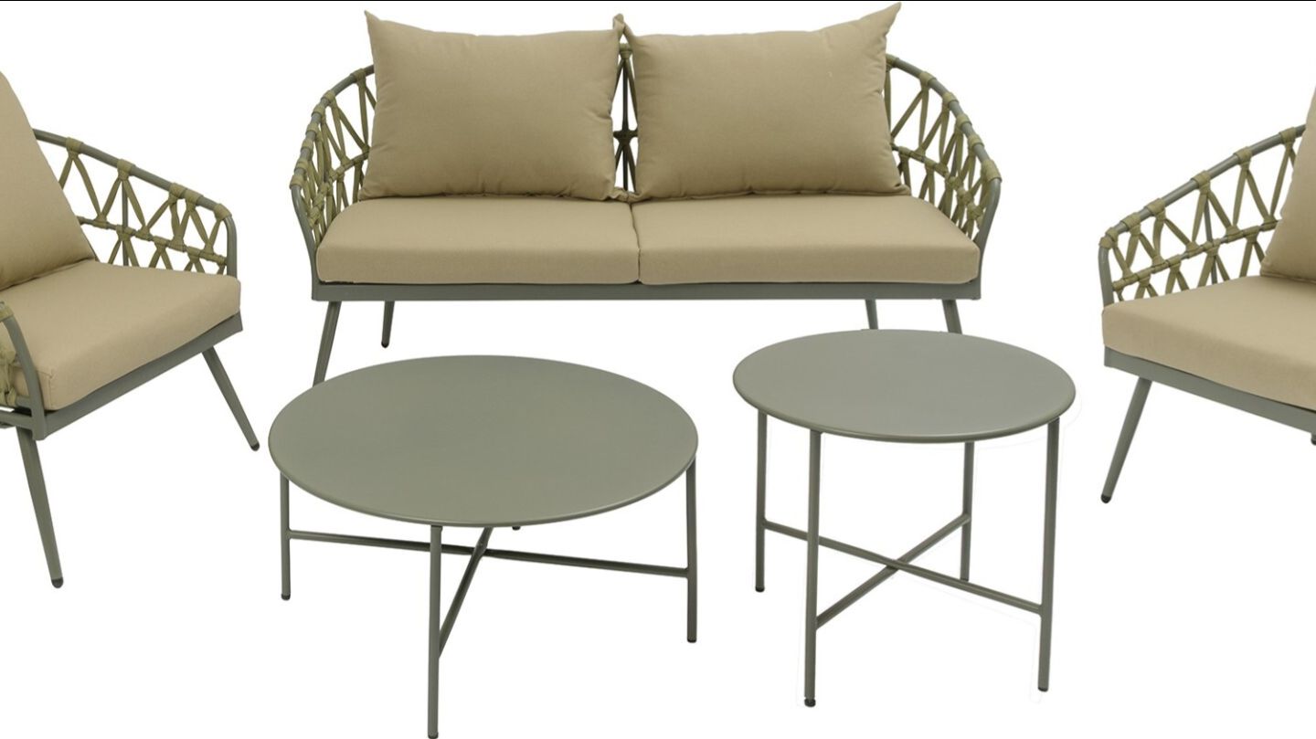 Набор садовой мебели Бермуды (2 столика+2 кресла+диван), сталь/роуп, мятный 464438
