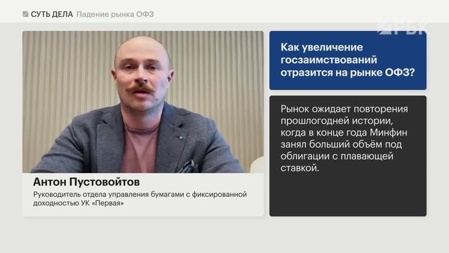 Подписывайтесь на канал: https://www.youtube.com/channel/UCD23js7wHnyG_yhimDMpLpg?sub_confirmation=1 --------------------- Индекс гособлигаций с максимумов августа снизился более чем на 5%. Доходность длинных ОФЗ превысила 15%. Рынок долга негативно реагирует на меньшее, чем ожидали, снижение ключевой ставки. Как изменения макроэкономических параметров отразятся на долговом рынке? Какие факторы более всего влияют на доходности ОФЗ. Есть ли инвестидеи на долговом рынке. В сути дела разбирались Владимир Цибанов, заместитель гендиректора УК «ААА Управление Капиталом»; Виталий Наумов, старший стратег по рынкам облигаций, ставок и валют «Эйлер»; Антон Пустовойтов, руководитель отдела управления бумагами с фиксированной доходностью УК «Первая». 00:00 Начинаем 00:31 Изменение макроэкономических параметров и рынок долга 02:25 Как увеличение госзаимствований отразится на доходностях ОФЗ 03:51 Стоит ли покупать длинные ОФЗ на коррекции 05:22 Какие облигации интересны прямо сейчас --------------------- #РБК #инвестиции #Россия --------------------- Подпишитесь на нас в соцсетях: Telegram-канал «Сам ты инвестор»: https://t.me/selfinvestor Telegram-бот «РБКарп Дивиденды»: https://web-telegram.ru/#/im?p=@Karpinvest_bot Рассылки РБК Инвестиции: https://investletter.rbc.ru/ VK: https://vk.com/rbc_investments