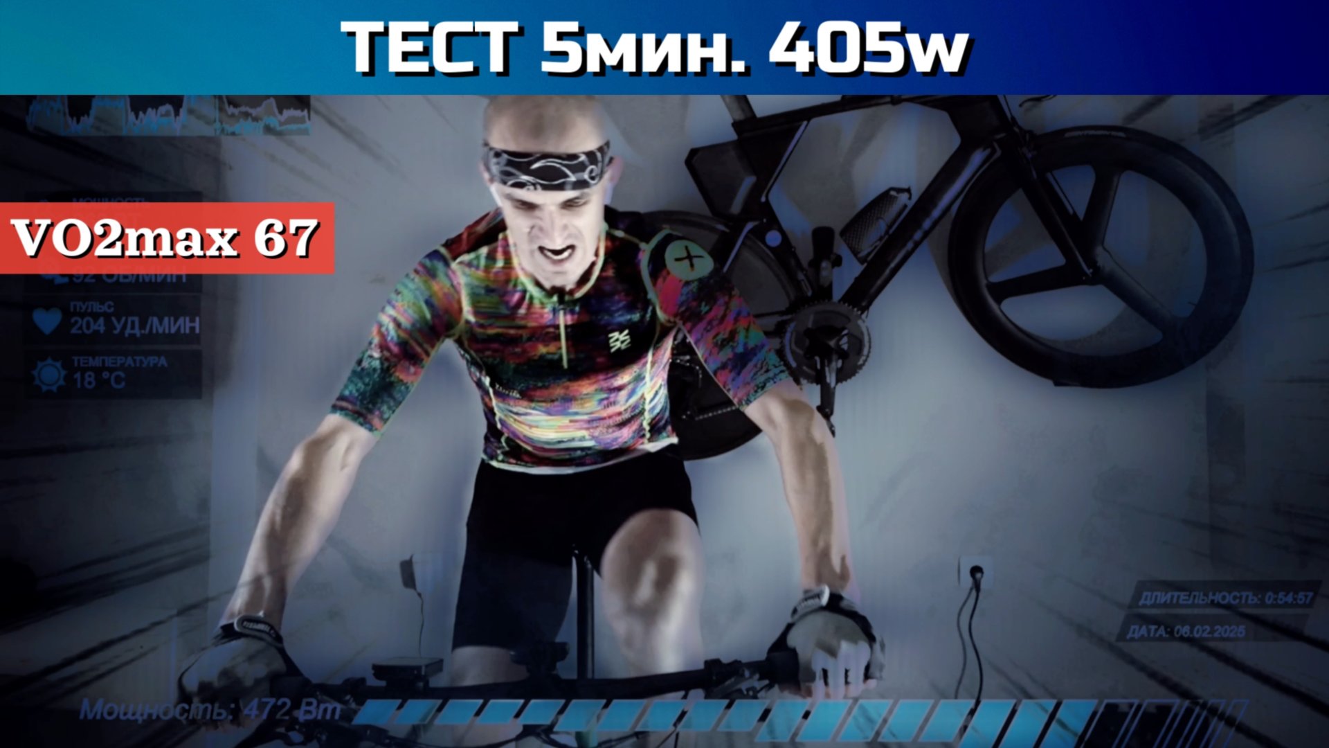 Тест мощности 5 минут - 405w, VO2max - 67