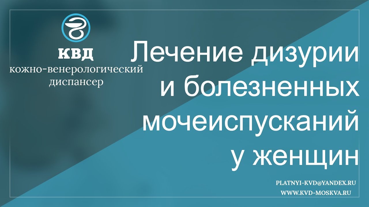 Дизурия – это общее название для всех расстройств, которые связаны с мочеиспусканием. Лечение дизурии и болезненных мочеиспусканий у женщин должно проходить под пристальным вниманием врача. Подробнее - https://kvd-moskva.ru/dizuriya-chto-eto-takoe/ Для подробной консультации по этому вопросу, обращайтесь в платный центр КВД-Москва. Наши телефоны: 8 (495) 642-30-37, 8 (495) 532-66-57 Наш e-mail: platnyi-kvd@yandex.ru Наш сайт: http://kvd-moskva.ru