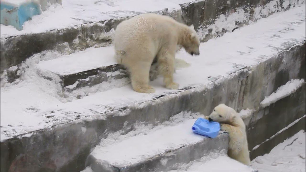 Герда родилась в Москве 20 ноября 2007 года. Её мама Симона, папа Врангель. В Новосибирск переехала 05.08.2008. В 2013 году у Герды и Кая родилась Шилка. В 2015 году она переехала в Японию. В 2015 году родился Ростик. 6 декабря 2018 года он переехал в Китай. В 2018 году родились Норди и Шайна. Данная пара молодых медведей находилась вне экспозиции зоопарка, поэтому посетители не могли их видеть. Передача молодых медведей в другой зоопарк не планируется, — ответили на запрос редакции в пресс-центре мэрии Новосибирска. Но Шайна 20 января 2024 года переехала в Ижевский зоопарк. Белые медведи одиночные животные. Как правило, миролюбивы по отношению друг к другу, но между самцами в брачный период случаются стычки. Взрослые самцы могут нападать на медвежат. Гон с марта по июнь. Продолжительность жизни — максимум 25—30 лет; в неволе рекорд долгожительства — 42 года. Вес очень крупных самцов в некоторых частях ареала 700 и даже 800 кг: есть данные о зверях весом до 1000 кг. Обычно вес меньше. Самки всегда не только меньше, но и значительно легче самцов. Так, самцы в восточной Гренландии в состоянии нормальной упитанности весят 400—450 кг, хорошо упитанные — до 500 кг, самки, даже очень сытые, здесь же редко весят больше 350—380 кг, т. е. их вес составляет около 75% веса самцов. Длина тела на 3-й день после рождения 28—32 см, средний вес — около 755 г (650—840 г). На 26-й день длина тела увеличивается незначительно — до 35—38 см, а вес возрастает до 1125—1275 г. В возрасте 60 дней самцы весят около 7 кг, самки — около 6 кг при длине тела у первых 58—60 см, у вторых 54—58 см. В возрасте 4 месяца медвежата достигают веса 22—23 кг, в 6-месячном возрасте при длине около 110 см — 40—43 кг, в 8-месячном — 58—62 кг. Длина тела в возрасте с 6 до 9 месяцев нарастает по 6—7 см в месяц. Во время зимнего сна рост почти прекращается. В зоопарке медведей кормят утром морской рыбой, хлеб с рыбьим жиром внутри, морковь, яблоки, морская капуста, яйцо дают сырое. Медвежат подкармливают молоком из соски. На ужин мясо (говядина, конина, куры или индейка). Летом и осенью арбузы, дыни, ранетки, кабачки, тыквы, огурцы. Когда показательное кормление летом бросают живую рыбу. Медвежата с медведицей находятся до 2-х лет. 16 декабря 2022 года Герда родила 2-х медвежат. И это две девочки! Имена дали 25 июня. Медвежат зовут Стрелка и Белка. Обзор вольеров белых медведей https://www.youtube.com/watch?v=mAt_b7JD0B4&list=PLGvf0V-rAHxkpGKJaWIZIUxRKgKiqV3xZ&index=17&t=0s