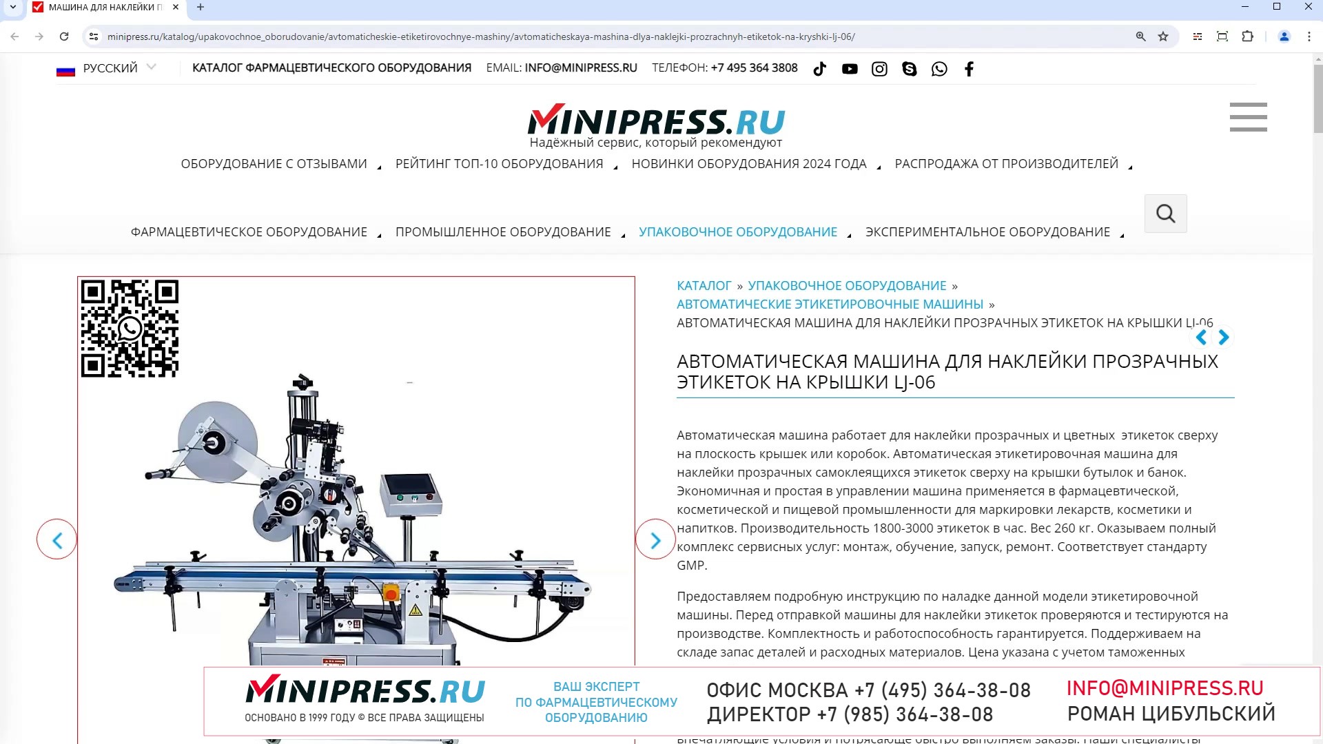 Каталог компании MINIPRESS.RU предлагает большой выбор ЦЕЛЛОФАНАТОРОВ И УПАКОВЩИКОВ В ПЛЕНКУ. Оборудование для групповой упаковки и обертывания, запайки в полиэтиленовую пленку, целлофанирования, обертывания целлофановой пленкой. Компания Романа Цибульского MINIPRESS.RU занимается поставкой большого ассортимента фармацевтического оборудования из Китая, Кореи, Индии, Европы и других стран. Мы выполняем работы по поиску, подбору, закупке, доставке, и таможенной очистке оборудования с доставкой в любой город России и стран СНГ. Основатель и ведущий специалист компании - Роман Цибульский. Компания MINIPRESS.RU (зарегистрированный товарный знак) основана в 2000 году. Онлайн каталог оборудования MINIPRESS.RU ежедневно посещают несколько тысяч человек. Мы развиваем крупные каналы в социальных сетях, посвященные тематике фармацевтического оборудования. Вы можете посмотреть видео ролики об оборудовании, которым мы занимаемся. Фактически у нас самый большой в России многоязычный каталог фармацевтического оборудования с фотографиями, описаниями, и что более важно с ценами и видео демонстрацией оборудования в работе. Подбор оборудования и консультации ведет сам владелец компании - Роман Цибульский. Компания имеет огромный опыт в работе с различным оборудованием, технологиями. Помогаем клиентам выбрать модель фармацевтического оборудования, которое сможет решить поставленную задачу. Наши специалисты помогают рекомендациями в решении проблем по эксплуатации оборудования. Наша компания имеет офис в г.Шанхай и несколько менеджеров, которые помогают в работе с китайскими поставщиками. Мы долго сотрудничаем и дружим с этими специалистами. Китайские поставщики ценят нас как постоянных партнеров. Роман Цибульский Директор компании Минипресс Поставка фармацевтического оборудования в Россию Пишите: info@minipress.ru Gmail: boss.minipress@gmail.com Офис в Москве +7(495)364-38-08 Мобильный +7(985)364-38-08 (WhatsApp) Каталог оборудования https://www.Minipress.ru/katalog/ МИНИПРЕСС.РУ В СОЦИАЛЬНЫХ СЕТЯХ FB https://facebook.com/roman.tsibulsky YOUTUBE https://www.youtube.com/@farmacevticheskoe_oborudovanie INSTAGRAM https://www.instagram.com/farmacevticheskoe_oborudovanie/ #флоупак #технологии #смеситель #гранулы #прибыль #ламинирование #масло #конвейер #тендер #вибрация
