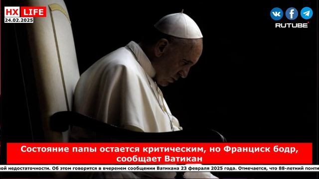 НХ-LIFE: Состояние папы остается критическим, но Франциск бодр, сообщает Ватикан